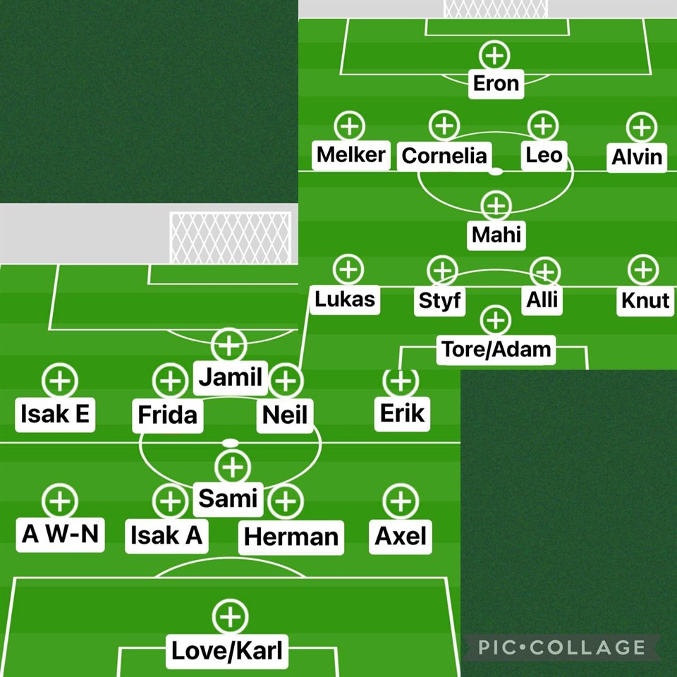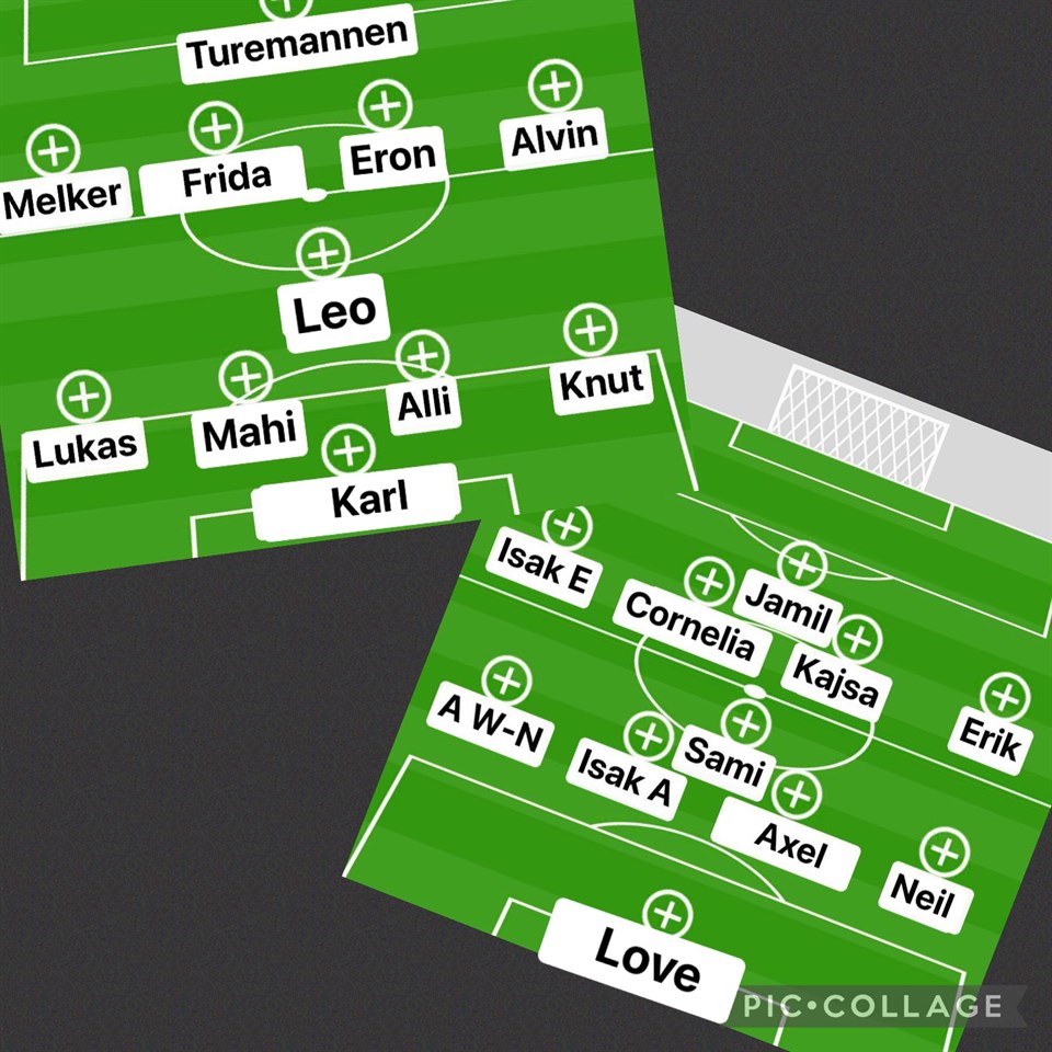 Tjena alla kring U16!!! Jag har stämt av träningen med både Dennis & Rickard och jäklar vad glad jag är att ni alla tog erat ansvar och höjde tempot. Jag har själv suttit och tittat på akademiträning i Helsingborg idag och tränarna där var extremt tydliga om vikten av tempo på träningarna. De tog till och med 5 spelare åt sidan för att med en bestämd röst, säga till att de förväntade sig mer fokus mellan övningarna. Allt för att hela träningen skulle ha rätt fokus. Några har fallit bort till imorgon och några kommer till så vi startar enligt bilden. Lucas M-J & Persson är med laget där Jamil är forward. Jack är med i laget där Turemannen är forward. Nu jäklar är det inte långt kvar till nästa träning eller höstsäsongspremiären, jag är så jäkla taggad…. Ha 7kt jäkla skoj imorgon och slå massor med bra passningar PS imorgon kommer en annan twist än straffläggningen
